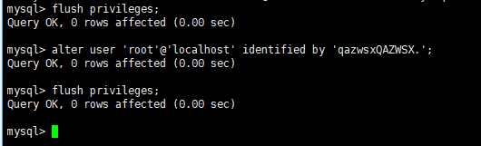 alter user 'root'@'localhost' identified by 'qazwsxQAZWSX.';