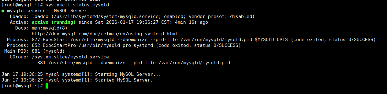 systemctl status mysqld9、再次尝试正常登录数据库