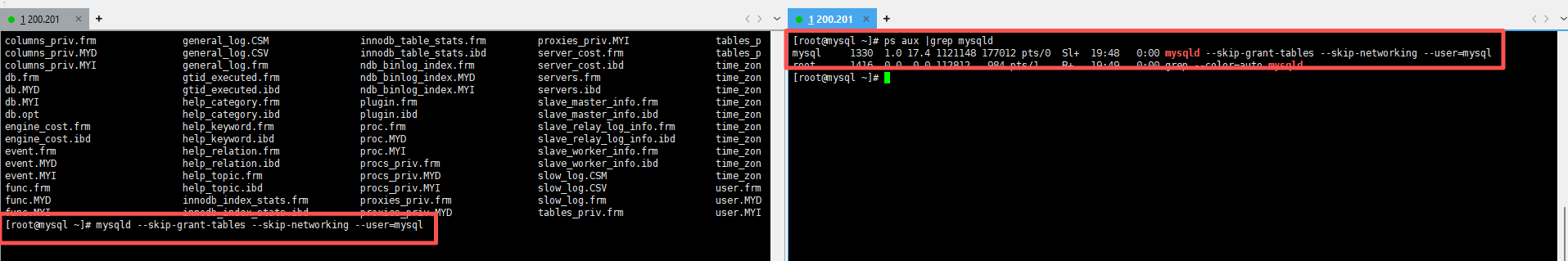 [root@mysql ~]# systemctl stop mysqld4、以安全模式启动MySQL(禁止网络连接)
